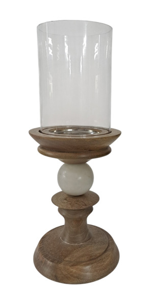 17"H x 6.5"Dia Wood/Ball Candle Holder