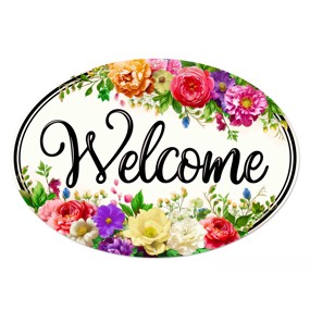 13"L x 9"H Welcome W/Autumn Florals Sign