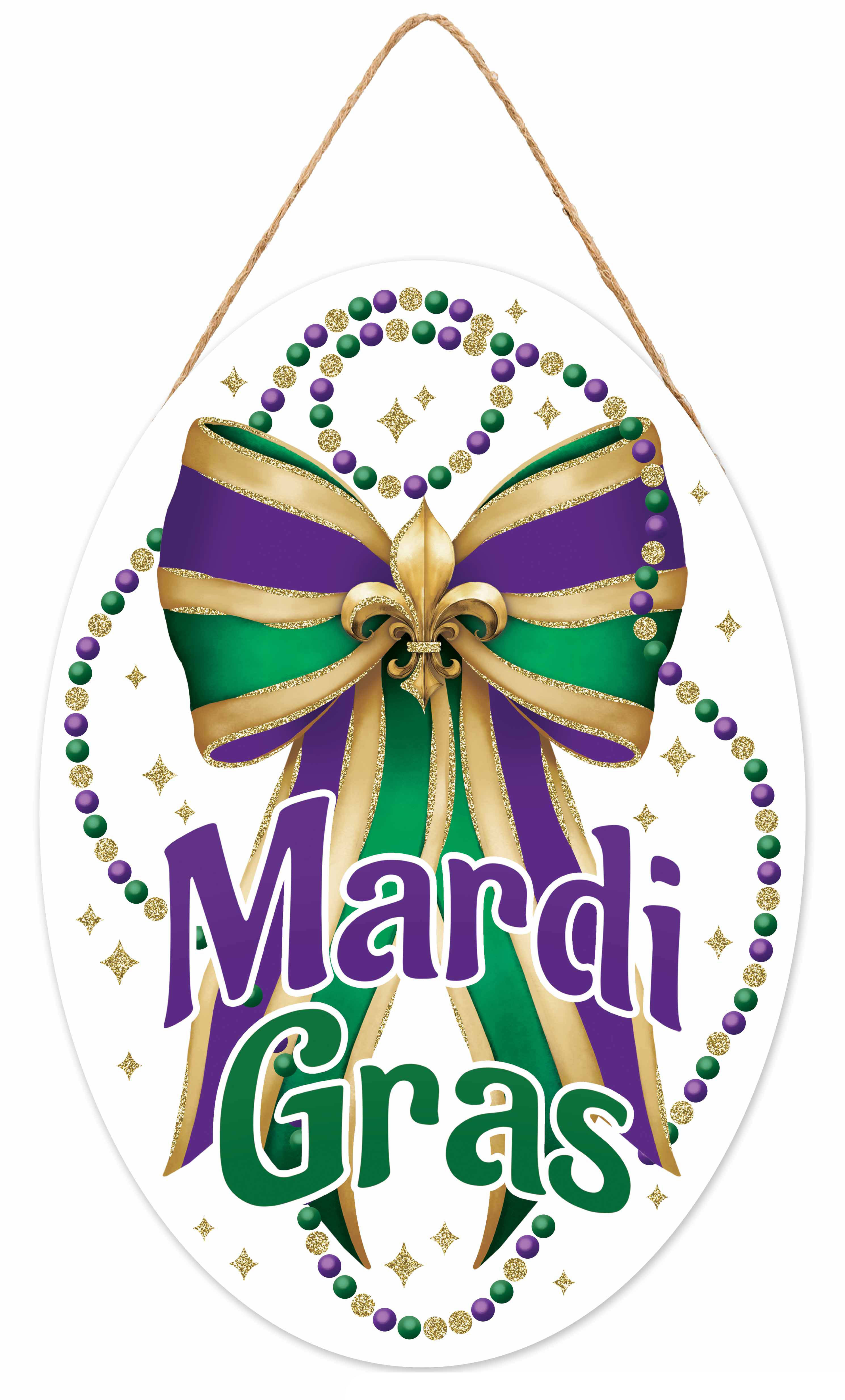 Get Ready To Celebrate With This Festive 13-Inch Glitter Mardi Gras Bow Sign! Made From Durable 6Mm Thick Mdf And Measuring 13" High By 9" Long, This Vibrant Sign Features A Dazzling Bow Design Dusted With Glitter, Perfect For Adding Sparkle To Your Mardi Gras Festivities. A Sturdy Jute Hanger Is Conveniently Stapled To The Back, Making It Easy To Display On A Door, Wall, Or Anywhere You Want To Bring A Touch Of New Orleans Flair. Laissez Les Bons Temps Rouler!