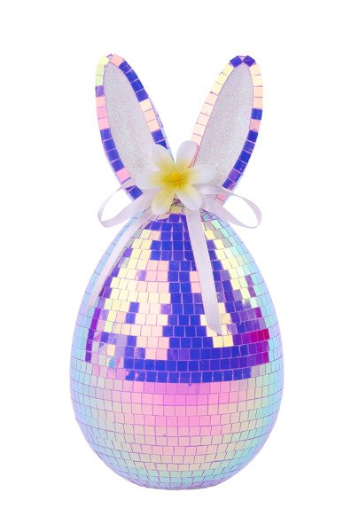 5.5"H x 4"Dia Irid Mirror Egg W/Ears/Bow