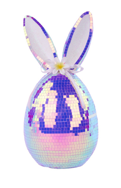 7.25"Hx5.5"Dia Irid Mirror Egg/Ears/Bow