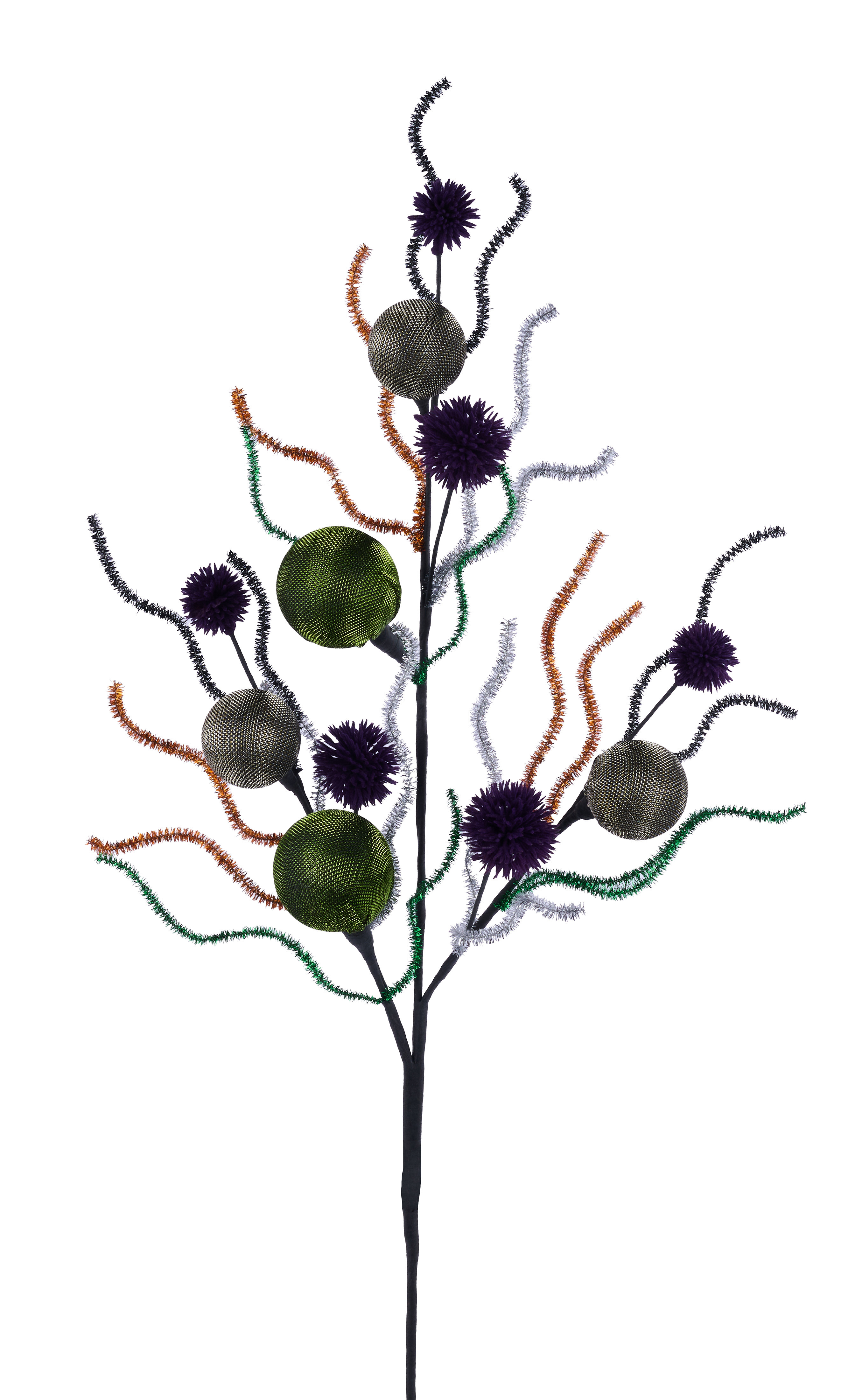 25"L Metallic Ball/Tinsel/Thistle Spray