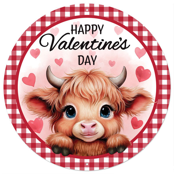 Bring Heartwarming Charm To Your Valentine's Day Decor With This Adorable 12-Inch Diameter Metal Sign. It Features A Beloved Highland Cow Graphic, Complete With A Festive "Happy Valentine's Day" Message, All Framed By A Charming Plaid Border. This Delightful Sign Is Crafted From Durable Metal And Comes Equipped With Top And Bottom Holes, Making It Incredibly Easy To Hang, Attach To Wreaths, Or Incorporate Into Your Holiday Displays. It's The Perfect Rustic-Meets-Romantic Accent!