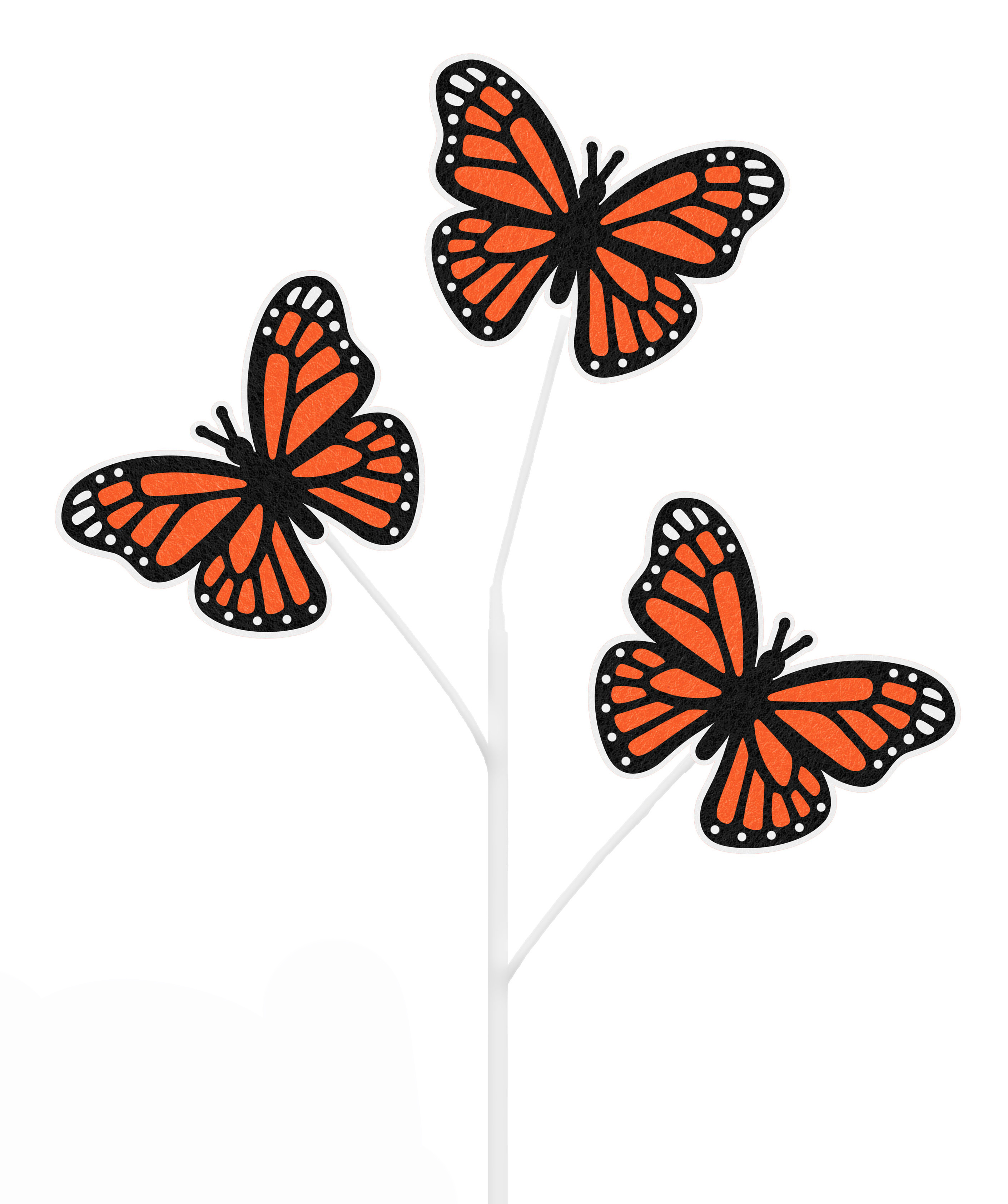 Introduce The Striking Beauty Of Monarch Butterflies To Your Decor With This 23"L Felt Fabric Monarch Butterflies Spray. It Includes Three Lifelike 3.5"L Felt And Fabric Monarch Butterflies. The Stem Is Finished With White Tape For A Clean Appearance, Making It A Perfect Accent For Various Decorative Projects.