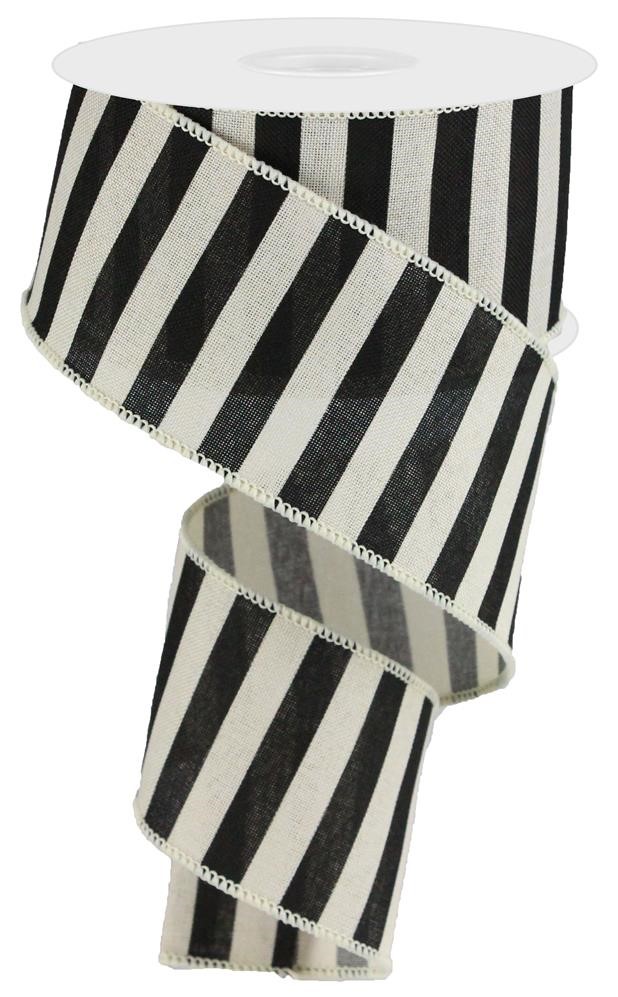 Add This Versatile Medium Horizontal Stripe On Royal Burlap Ribbon To Any Display You See Fit! It's Wired Edge And Eye-Catching Cream And Black Stripe Pattern Make It An Adaptable Addition To Any Decorative Piece Of Your Choosing.