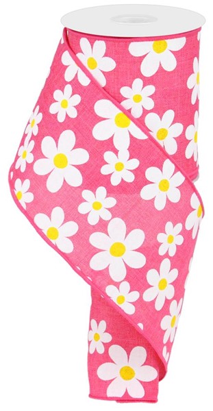 Celebrate The Season In Bloom By Decorating With This Lovely Flower Daisy Print On Royal Burlap Ribbon! This Ribbon Includes A Wired Edge, Along With A Collection Of White Daisies Against A Hot Pink Base! Use This Ribbon In A Wreath Finished With Floral Sprays And Picks To Complement This Ribbon!