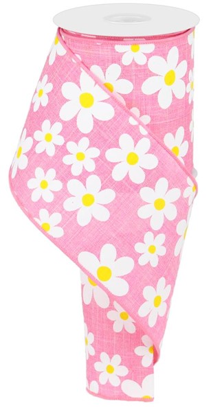 Celebrate The Season In Bloom By Decorating With This Lovely Flower Daisy Print On Royal Burlap Ribbon! This Ribbon Includes A Wired Edge, Along With A Collection Of White Daisies Against A Pink Base! Use This Ribbon In A Wreath Finished With Floral Sprays And Picks To Complement This Ribbon!