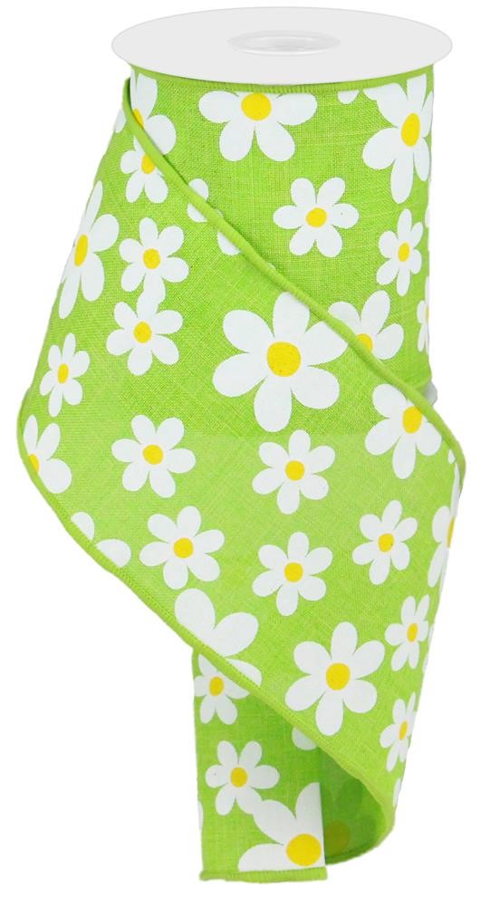 Celebrate The Season In Bloom By Decorating With This Lovely Flower Daisy Print On Royal Burlap Ribbon! This Ribbon Includes A Wired Edge, Along With A Collection Of White Daisies Against A Lime Green Base! Use This Ribbon In A Wreath Finished With Floral Sprays And Picks To Complement This Ribbon!