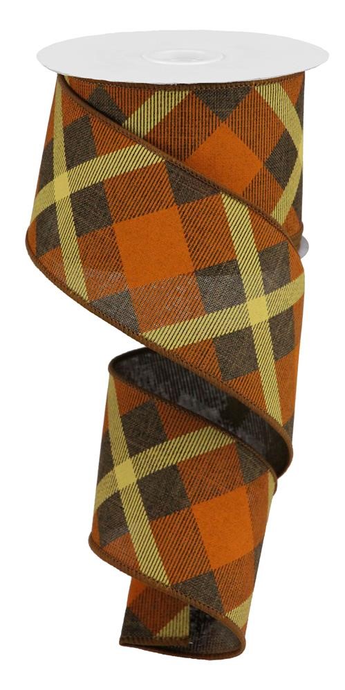 Add This Versatile Printed Plaid On Royal Ribbon To Any Display You See Fit! This Ribbon Features A Wired Edge, Along With A Brown, Orange And Mustard Plaid Pattern, Making It An Adaptable Addition To Any Decorative Piece Of Your Choosing.