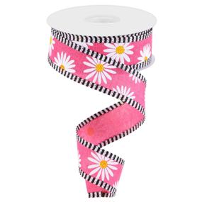 Celebrate The Season In Bloom By Decorating With This Lovely Daisy/Thin Stripe Ribbon! This Royal Burlap Ribbon Includes A Folded Fabric Wired Edge, Along With A Collection Of White And Yellow Daisies Against A Black Base! Use This Ribbon In A Wreath Finished With Floral Sprays And Picks To Complement This Ribbon!