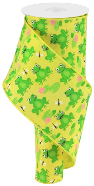 Hop Right Into Seasonal Decorating When You Use This Frogs On Royal Burlap Ribbon! Featuring A Sewn Wired Edge, This Ribbon Has A Variety Of Charming Frogs, Joined By Lily Pads, Flowers And Dragonflies On A Yellow Base. Add This Ribbon To A Wreath, Paired With A Decorative Sign, Colorful Mesh, Or Fun Sprays And Picks!