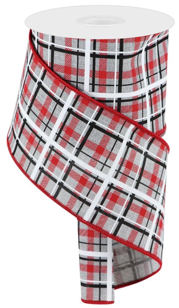Add This Versatile Printed Plaid/Royal Burlap Ribbon To Any Display You See Fit! This Ribbon Features A Wired Edge, Along With A Light Grey, Red, Black And White Plaid Pattern, Making It An Adaptable Addition To Any Decorative Piece Of Your Choosing.