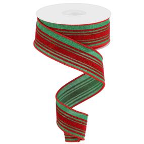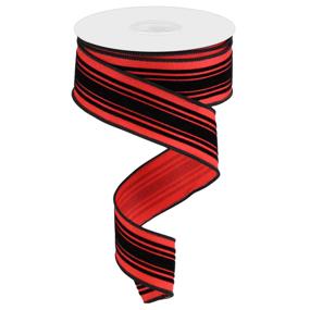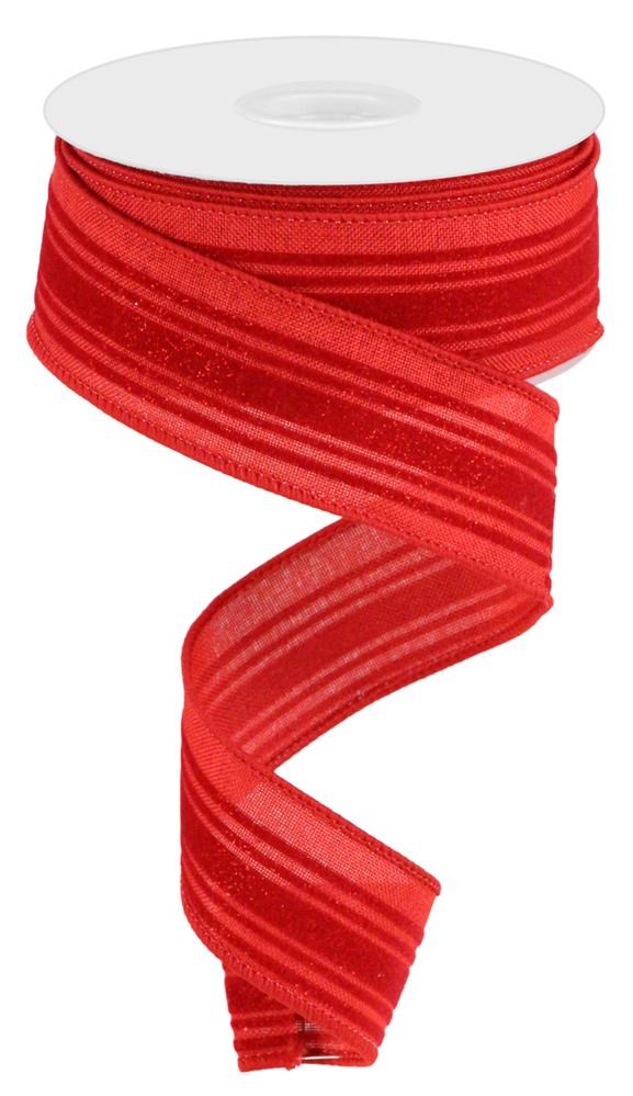 Use This Marvelous Glitter Velvet Vertical Lines On Royal Burlap Ribbon In Any Display You See Fit! This Ribbon Features A Sewn Wired Edge, Along With A Red Base And Red Glitter Lines, Making It An Adaptable Addition To Any Decorative Piece Of Your Choosing.