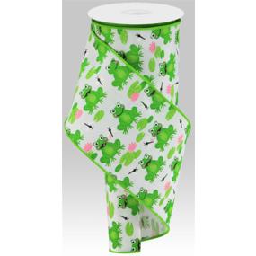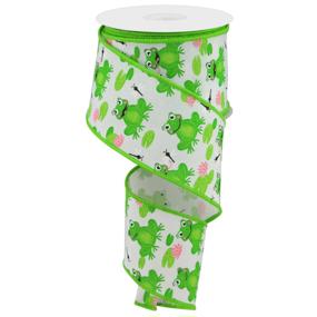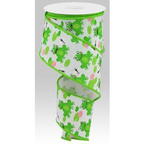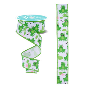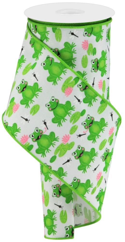 Hop Right Into Seasonal Decorating When You Use This Frogs On Faux Royal Burlap Ribbon! Featuring A Sewn Wired Edge, This Ribbon Has A Variety Of Charming Frogs, Joined By Lily Pads, Flowers And Dragonflies On A White Base. Add This Ribbon To A Wreath, Paired With A Decorative Sign, Colorful Mesh, Or Fun Sprays And Picks!