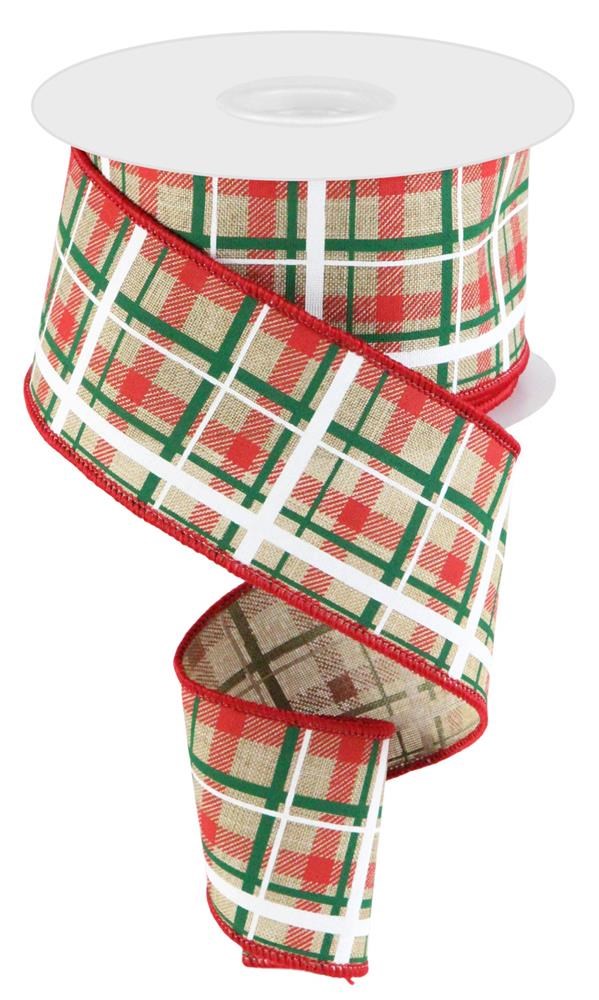 Add This Versatile Printed Plaid/Royal Burlap Ribbon To Any Display You See Fit! This Ribbon Features A Wired Edge, Along With A Light Beige, Red, Emerald And White Plaid Pattern, Making It An Adaptable Addition To Any Decorative Piece Of Your Choosing.