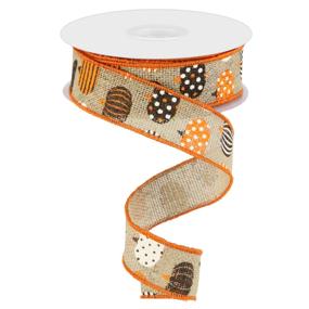 Let Your Creative Vision Free As You Decorate With This Patterned Pumpkins Ribbon! This Royal Burlap Ribbon Includes An Assortment Of Creative Pumpkins Against A Grey Base, Plus An Orange Sewn Wired Edge For Some Added Flair! Add This Ribbon To A Wreath, Outfitted With Other Autumn Enhancements, Like Sprays, Picks, Or Even More Pumpkins!