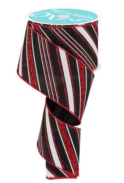 Add This Versatile Diagonal Line/Satin Ribbon To Any Display You See Fit! It's Wired Edge And Mix Of Different White And Red Lines Against A Black Base Make It An Adaptable Addition To Any Decorative Piece Of Your Choosing.
