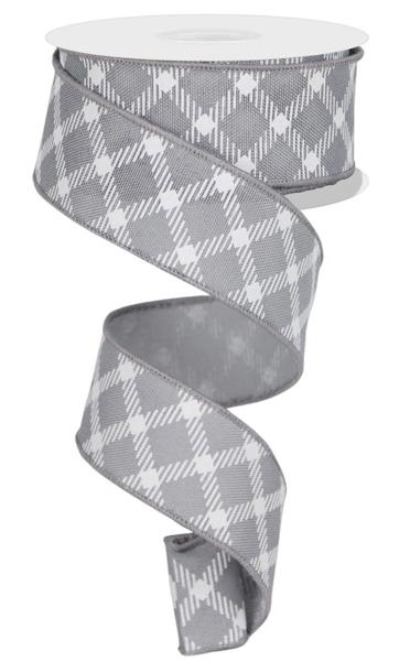 Add This Versatile Diamond Check/Faux Royal Burlap Ribbon To Any Display You See Fit! This Ribbon Features A Wired Edge, Along With A Grey And White Diamond Check Pattern, Making It An Adaptable Addition To Any Decorative Piece Of Your Choosing.