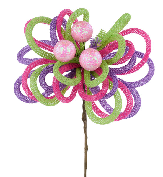 This Festive 12-Inch Pick Features Three Shimmering 30Mm Glitter Balls, Intricately Wrapped With A Combination Of Faux Jute Deco Flex Tubing. It's Perfect For Adding A Rustic Yet Glamorous Sparkle To Your Arrangements And Displays.